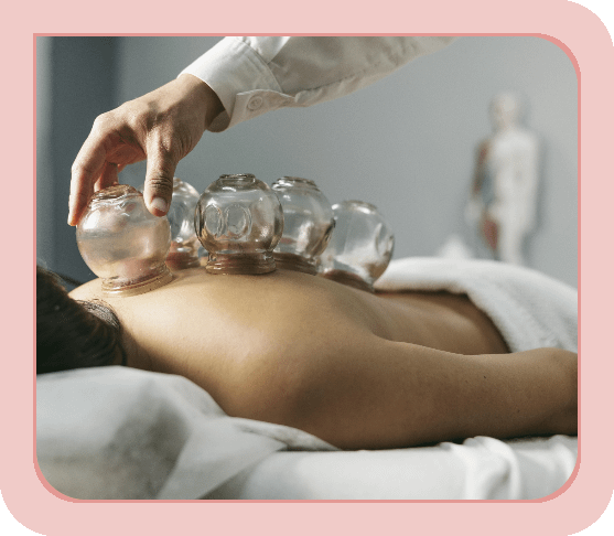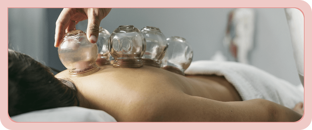 - Cupping (where a cup is applied to the skin, and the pressure in the cup is decreased, drawing the skin and muscles up into the cup).